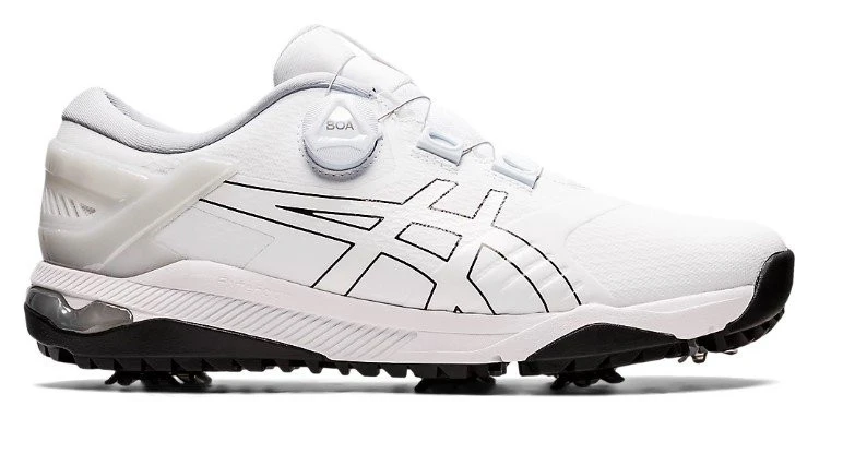 The GEL-COURSE™ DUO BOA golf shoe makes lacing up for the links a cinch. This style offers good stability with improved traction for the fairway and putting green. Equipped with a BOA™ lacing system, this shoe offers lightweight support, padding, and a more personalized fit. It also features an external heel counter that reinforces stability, so you can stay focused on your swing. The midsole is layered with FLYTEFOAM® technology to create lightweight cushioning. Additionally, the GEL® technology in the heel provides good shock absorption.