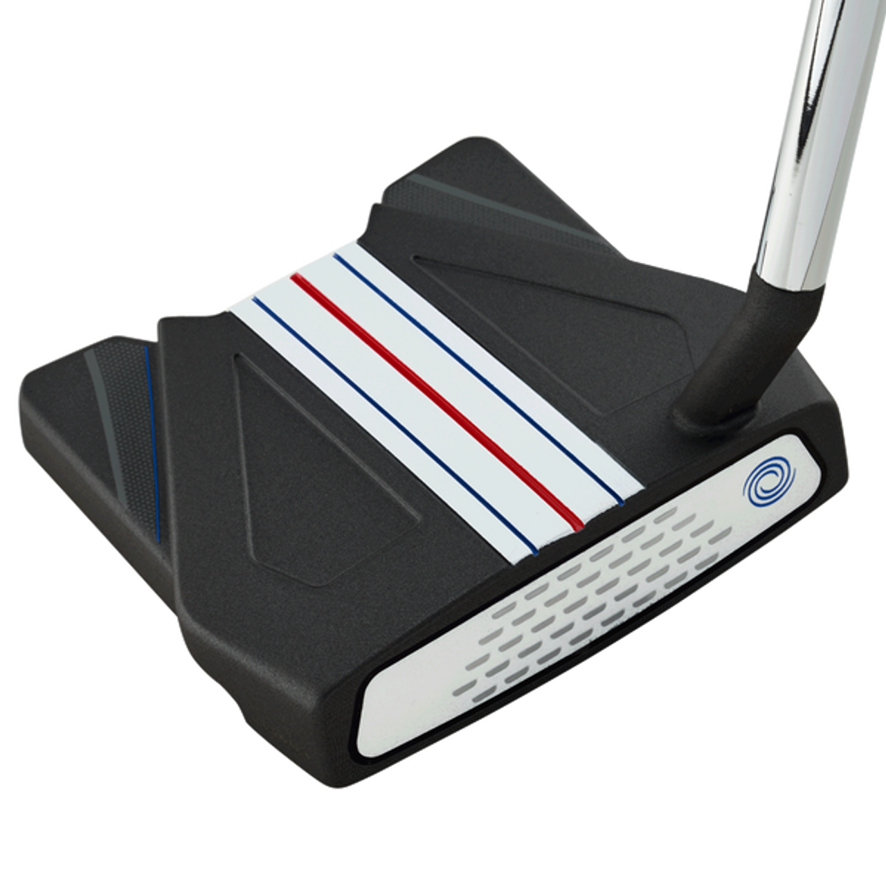 The Odyssey Ten Triple Track Slant Putter is a toe hang mallet best suited for golfers with strokes with moderate face rotation and arc. The Ten is a super high MOI head design with our new Stroke Lab shaft, Microhinge Star insert, and Triple Track technology.