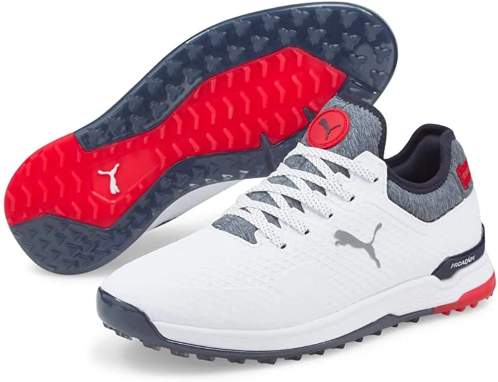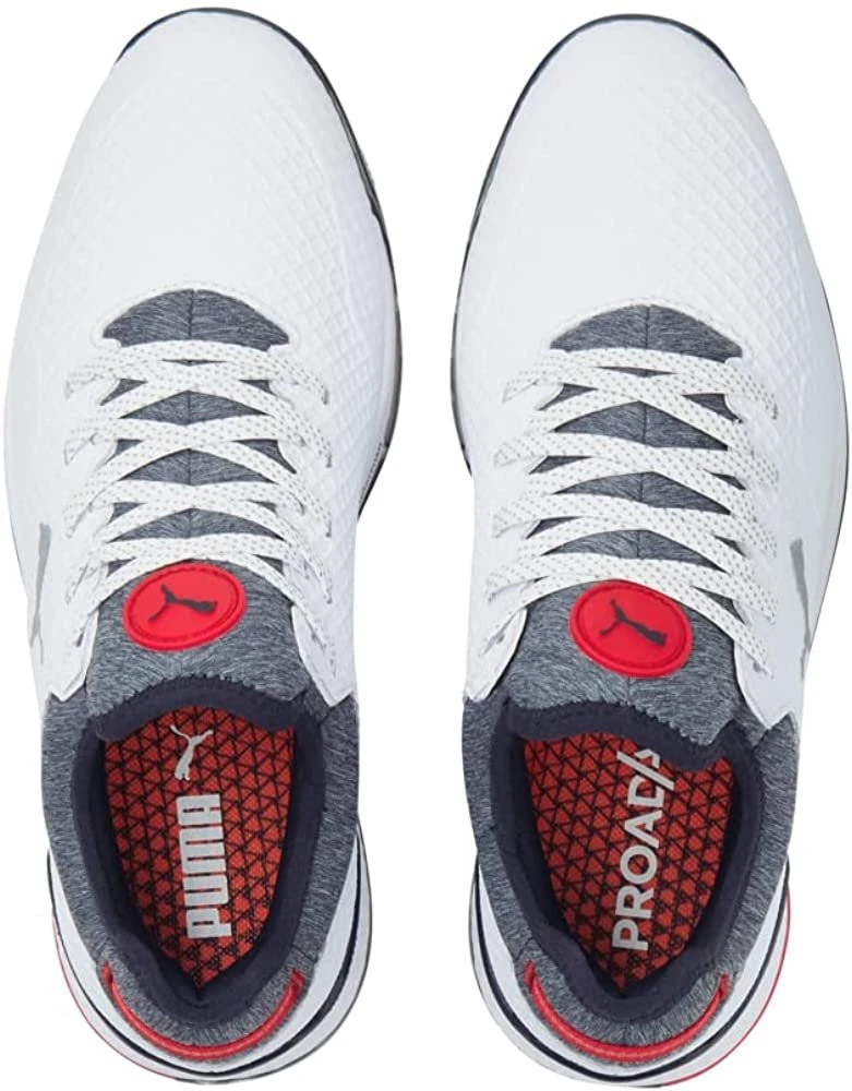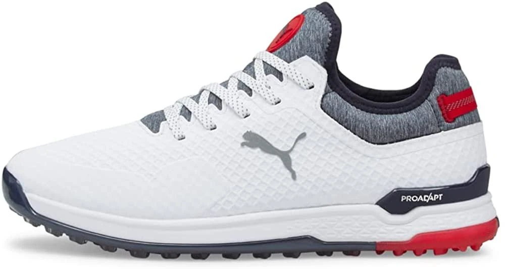 PUMA Men’s Proadapt Alphacat Golf Shoe – Puma White/Navy Blazer/High Risk Red
